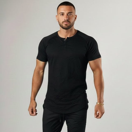 Flex-Cotton Tee | 3-Button | Black